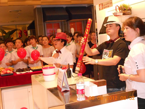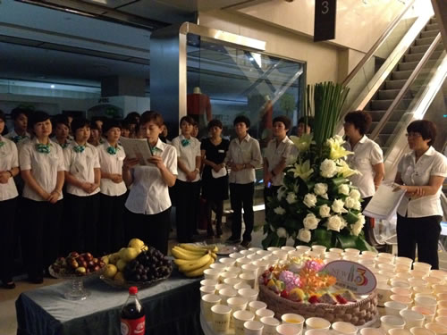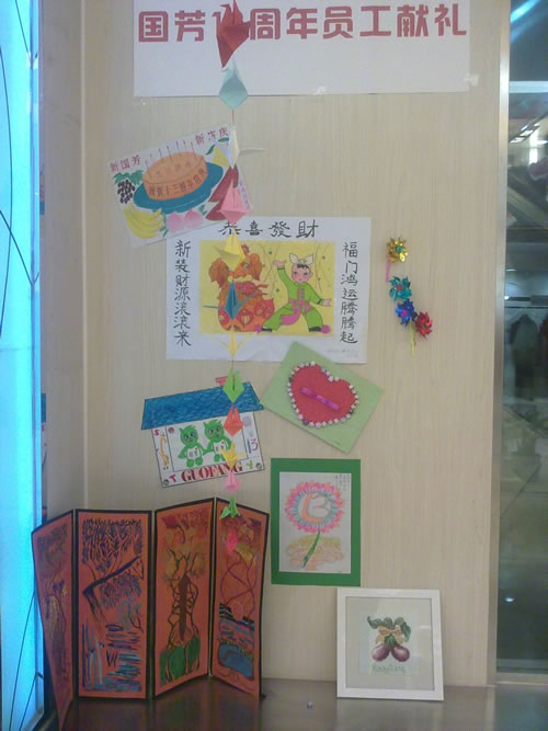 2012年9月8日,國(guó)芳集團(tuán)蘭州零售各店、各部門(mén)迎來(lái)了13周年的店慶盛典,今年的店慶大晨會(huì)我們延續(xù)了以往冷餐會(huì)的形式來(lái)慶祝國(guó)芳零售的13歲生日。冷餐會(huì)中穿插了店慶宣誓、唱生日歌、切蛋糕等精彩環(huán)節(jié),又增加了老員工店慶往事回顧和愛(ài)崗敬業(yè)案例分享,冷餐會(huì)最后全體管理人員以熱情的擁抱祝福了每一位員工,給大家?guī)嘏妥8。值得一提的是今年新加入了“員工獻(xiàn)禮”環(huán)節(jié),今年主要采取員工手工DIY的創(chuàng)意,讓大家動(dòng)手通過(guò)小工藝品和書(shū)畫(huà)等形式同工表達(dá)對(duì)國(guó)芳零售13周年店慶的祝福!并在店慶期間在賣(mài)場(chǎng)中間進(jìn)行了作品的展示,贏得了員工和顧客的一致好評(píng),給店慶增添了濃郁的人文色彩。