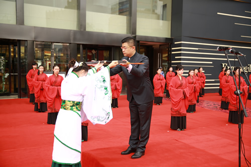 “人類因夢(mèng)想而偉大,企業(yè)因文化而繁榮”。為迎接國芳集團(tuán)十六周年司慶,9月5日9時(shí)許,于國芳百貨購物廣場(chǎng)正門盛大舉行了傳統(tǒng)漢式迎賓禮——鄉(xiāng)飲酒禮。活動(dòng)雖然已經(jīng)結(jié)束多日,但其熱度不減,該活動(dòng)形式新穎,文化氛圍濃厚,引各方專家學(xué)者熱議。