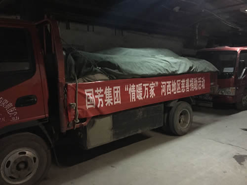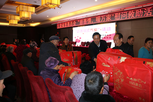2016年12月12日,甘肅省慈善總會、武威市民政局?jǐn)y甘肅國芳工貿(mào)(集團(tuán))股份有限公司共同舉行“情暖萬家”送溫暖活動,將100萬元資金以及價值100萬元的過冬棉服帶給天祝縣岔口驛敬老院的老人們。當(dāng)日下午,甘肅省慈善總會與甘肅國芳工貿(mào)(集團(tuán))股份有限公司的各位愛心人士又馬不停蹄的趕赴張掖為當(dāng)?shù)氐墓鹿牙先藥チ?60萬元資金以及價值250余萬元的過冬衣物及被褥。此次活動傳導(dǎo)社會幫扶、精準(zhǔn)扶貧精神的同時也默默為社會傳導(dǎo)著一份正能量。