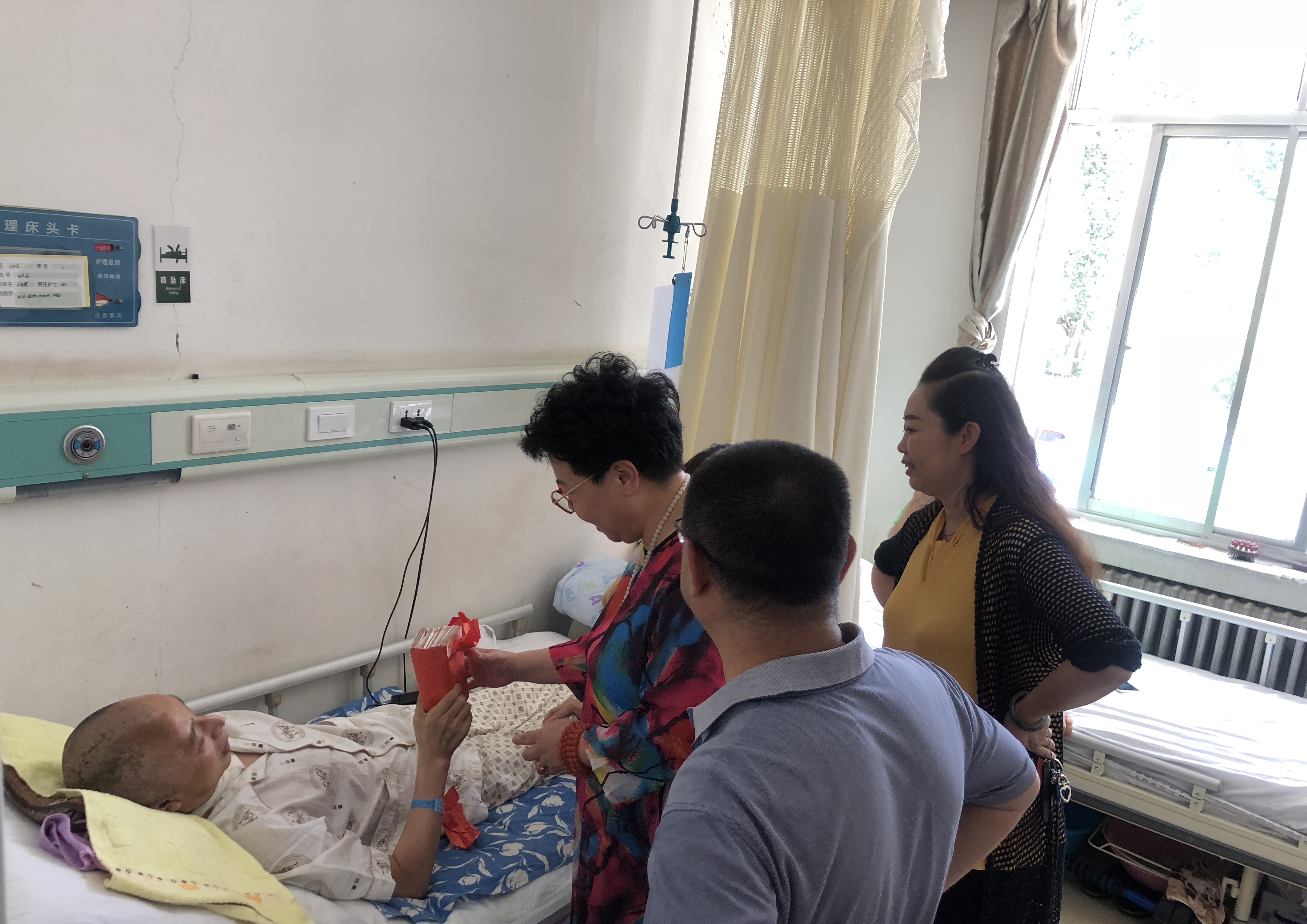 這是公司的一點(diǎn)心意,希望能幫助你們度過難關(guān)…”628日下午,甘肅國芳工貿(mào)(集團(tuán))股份有限公司董事會(huì)董事、財(cái)務(wù)總監(jiān)兼工會(huì)主席,人力資源總監(jiān)以及黨委常務(wù)副書記一行人驅(qū)車趕往蘭州大學(xué)第一醫(yī)院東崗院區(qū),慰問公司患病職工閆世忠,并代表公司送上愛心捐款50000元,令閆世忠及其家人備受感動(dòng)和鼓舞。
