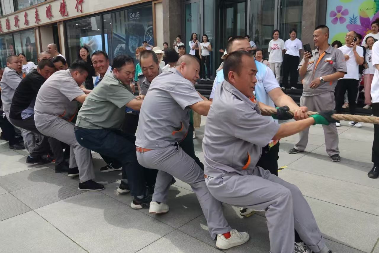 國芳集團蘭州地區(qū)各經營單位公司領導出席并參加運動會,當領導步入會場時,全場響起了熱烈而持久的掌聲。領導面帶微笑,頻頻向大家揮手致意,展現(xiàn)出親和與關懷。
