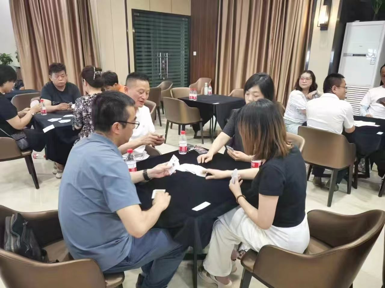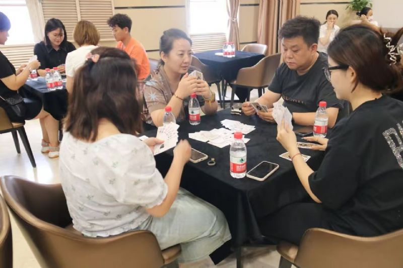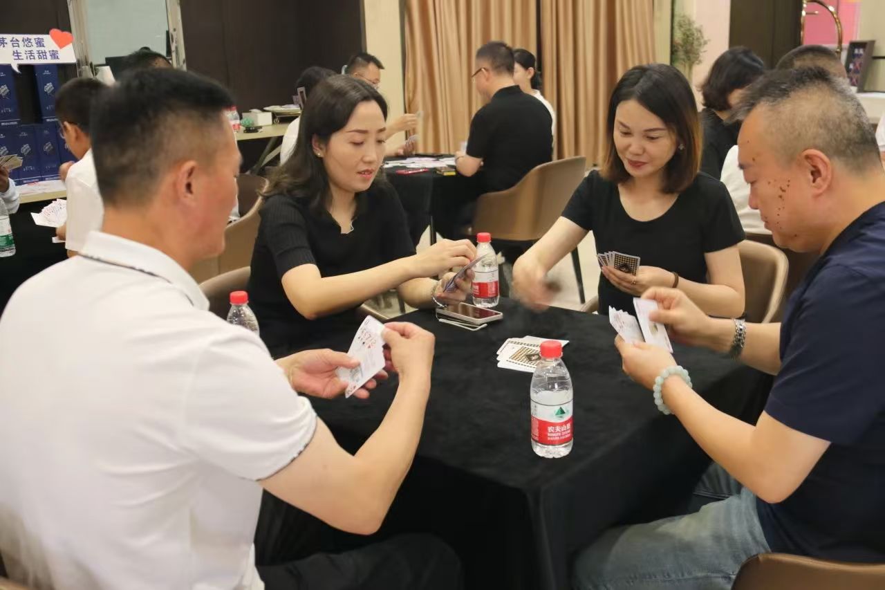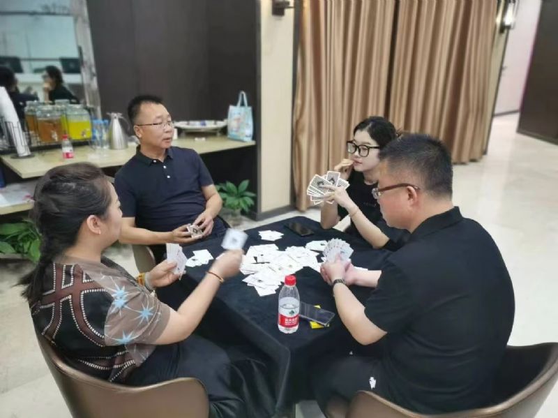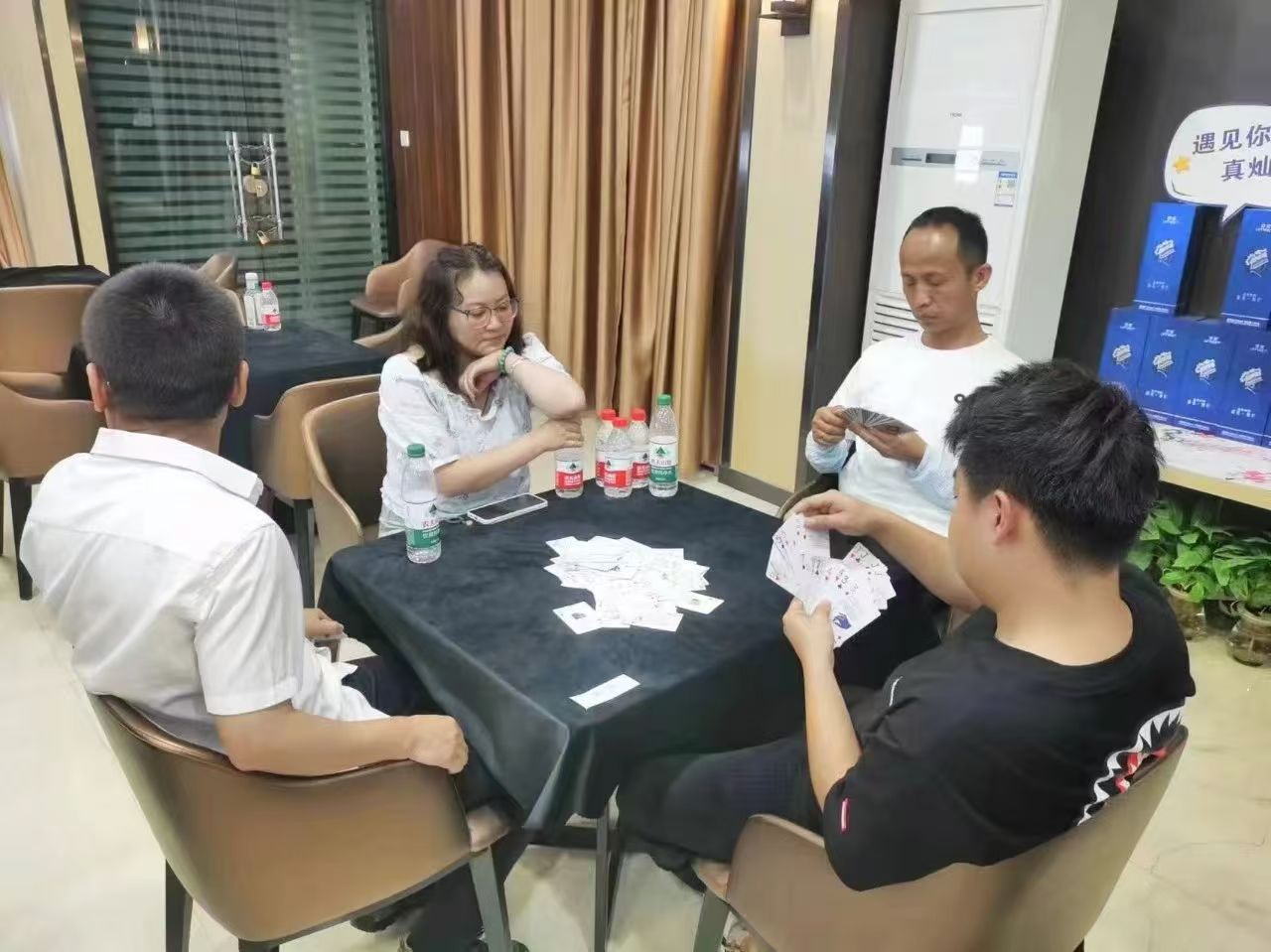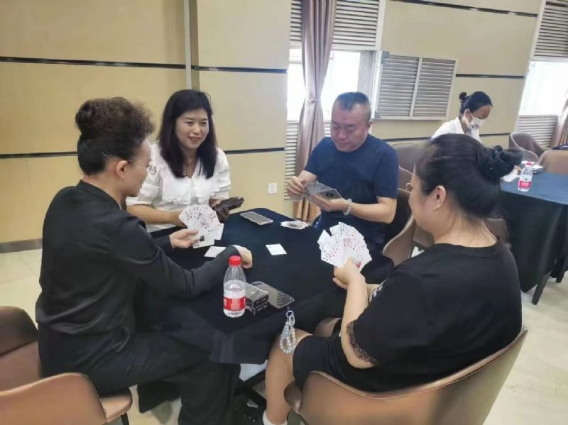 在運動會的摜蛋比賽現(xiàn)場,氣氛熱烈而又緊張。一張張牌桌整齊排列,參賽選手們兩兩相對而坐,神情專注而投入。他們的目光緊緊鎖住手中的牌,大腦飛速運轉,思考著出牌策略。每一次出牌都顯得深思熟慮,又充滿了果斷和自信。