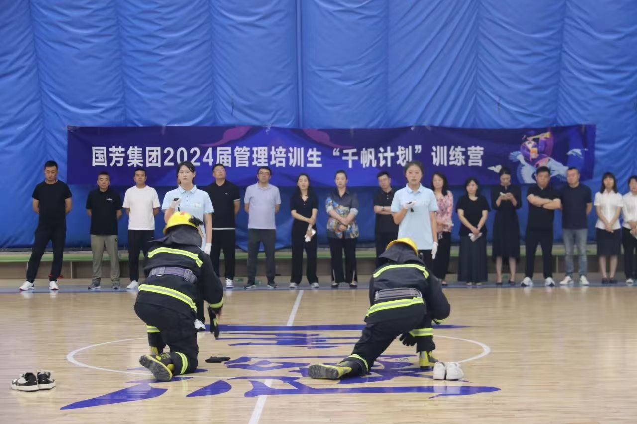 天朗氣清的日子里,管理培訓生的軍訓匯演悄然在國芳百貨81籃球館拉開帷幕。整齊的方陣,颯爽的英姿,堅定的目光,嘹亮的口號,無一不展現(xiàn)了多日來軍訓的成果。通過儀容儀表的訓練、團體合作訓練、滅火器的使用、消防水帶的連接、消防服穿戴等環(huán)節(jié)的展示,不僅提高了團隊的執(zhí)行力和凝聚力,更提高了員工集體責任意識和自律意識。